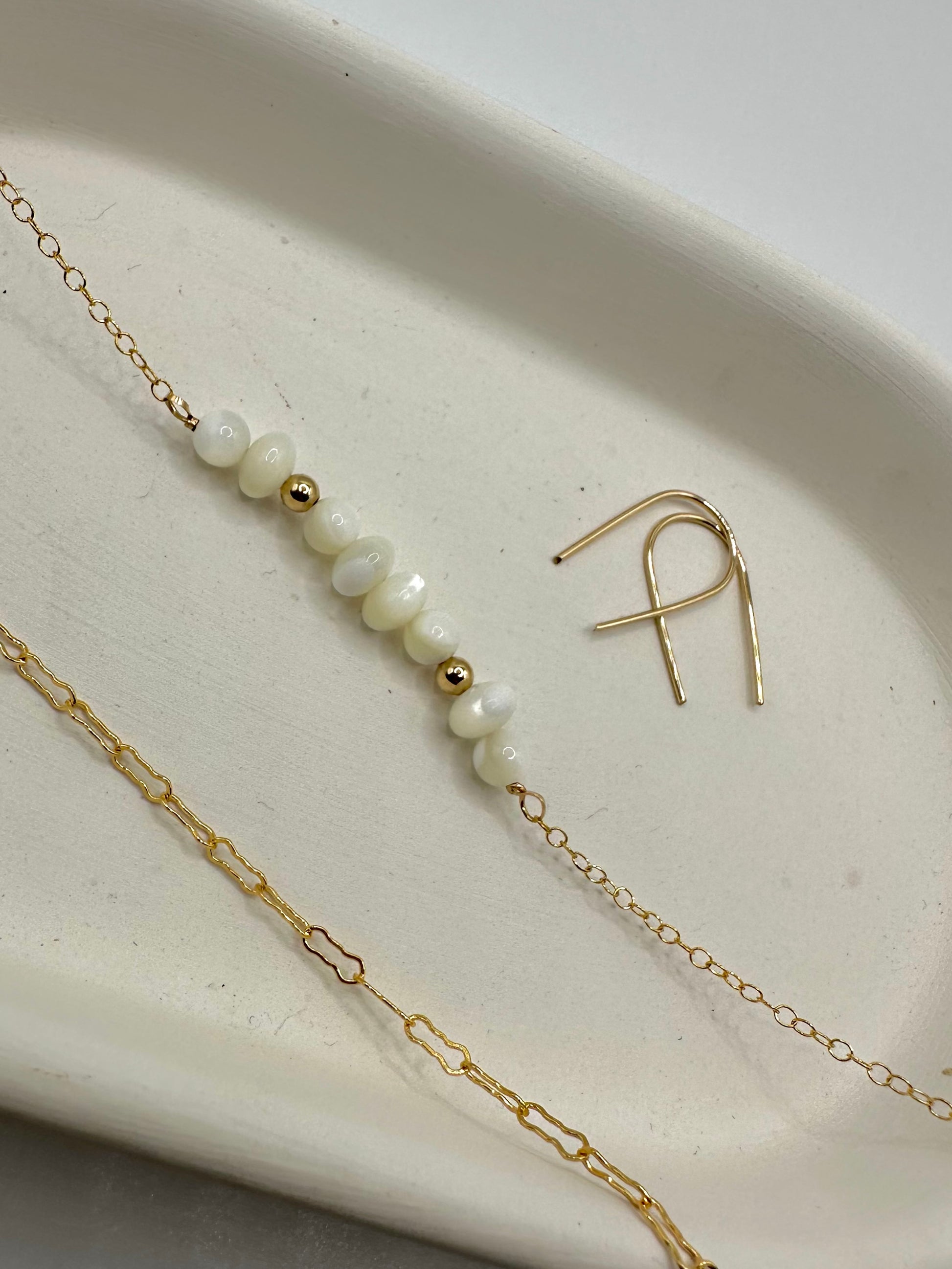 Minimal design, timeless glow—your new go-to mother of pearl bracelet.