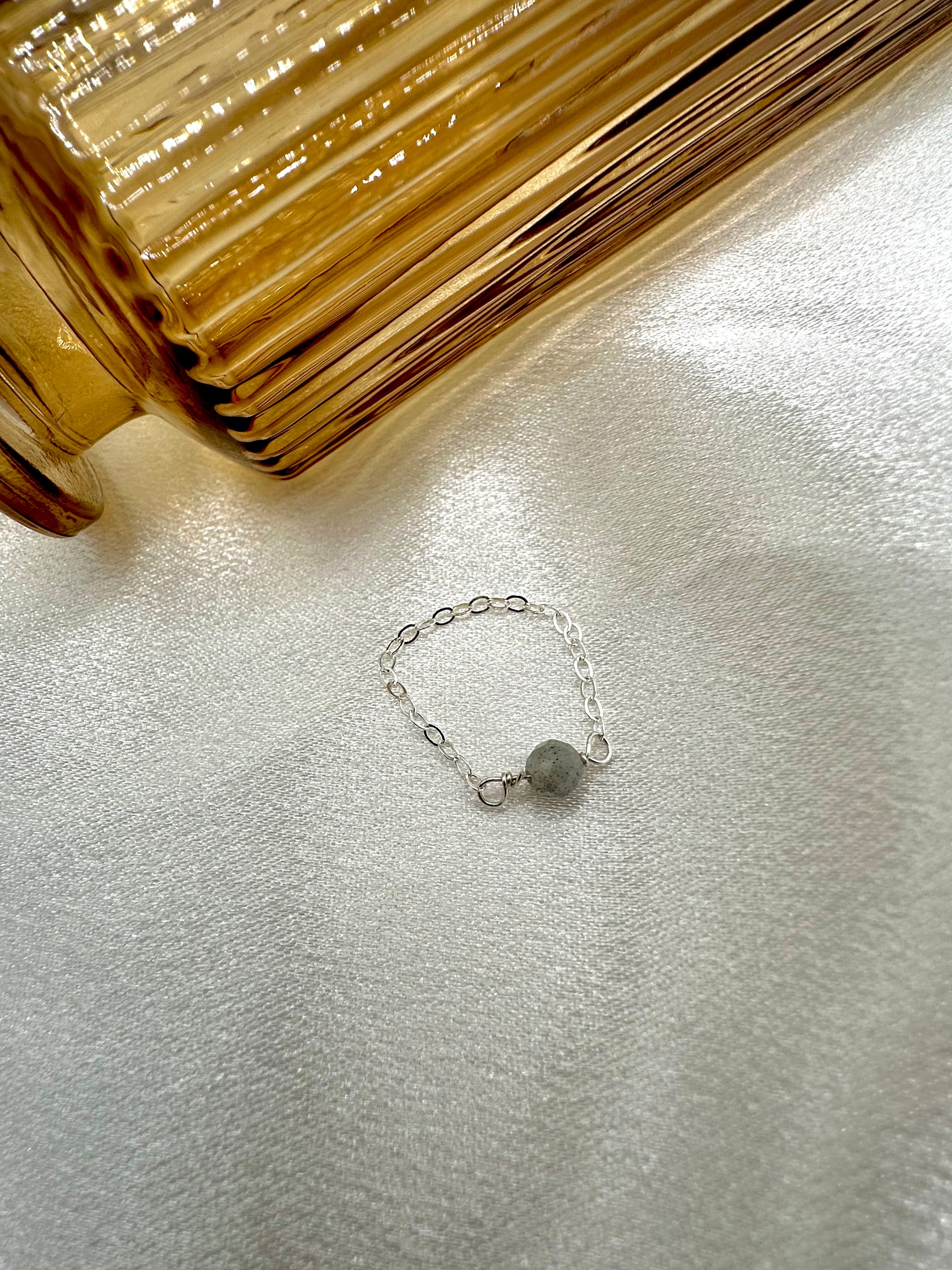 Delicate and modern, this dainty cable chain ring features a single gray moonstone bead that glows with subtle light. Lightweight and versatile, it’s perfect for adding a minimal statement.