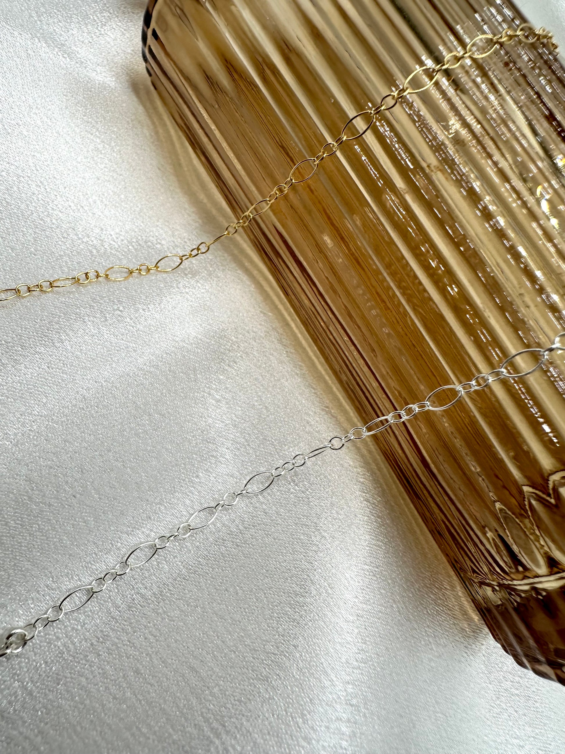 A modern twist on a classic design. This chain features alternating long and short links, giving it a sleek and stylish look.